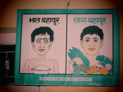 A poster in a Seva Nepal eye clinic promoting healthy eating for healthy eyes