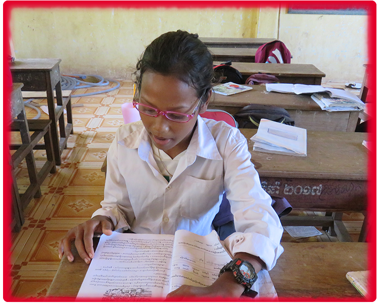 Thuon is a 13-year-old student in grade 7 living in a rural village in Mongkol Borey, Cambodia. For the past two years she had difficulty seeing clearly which made it hard for her to read, write and participate in class. Thuon and her parents worried that her poor vision was negatively affecting her grades and her self-esteem as she began falling behind her classmates.